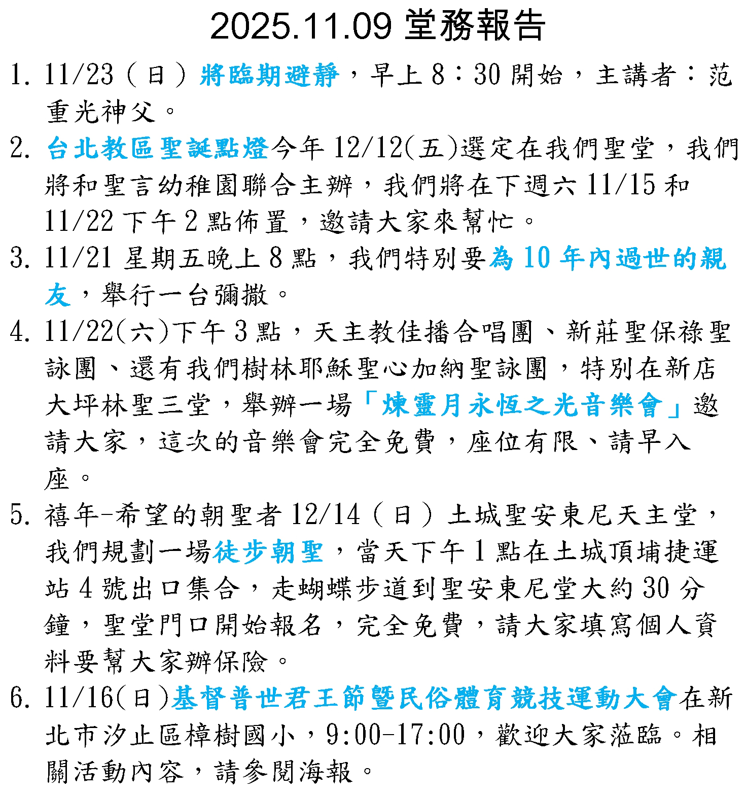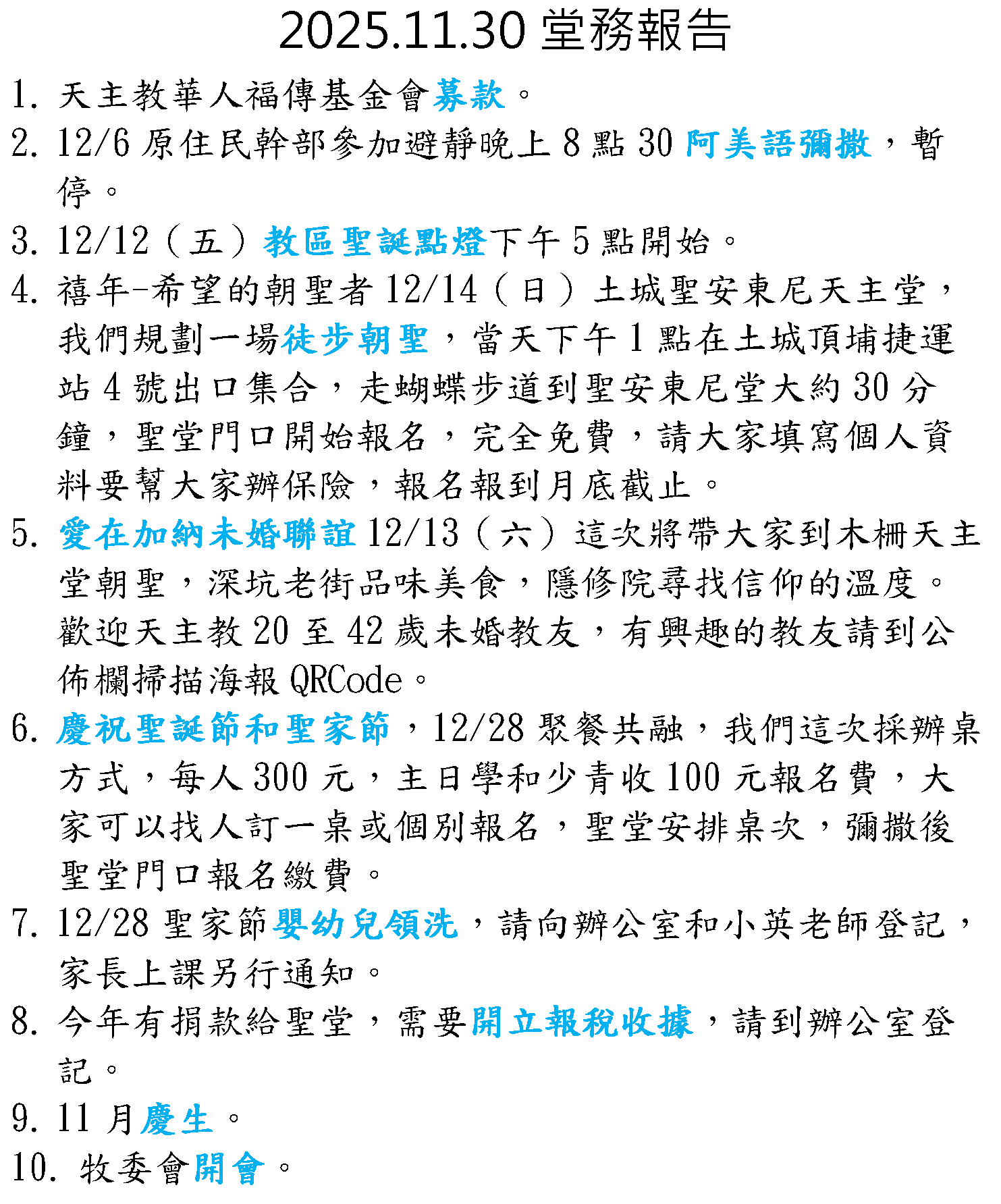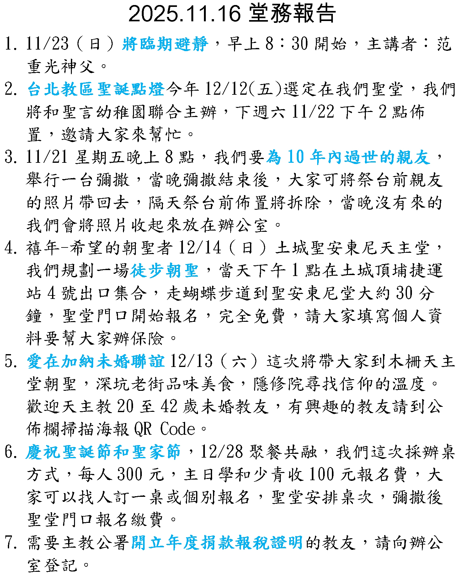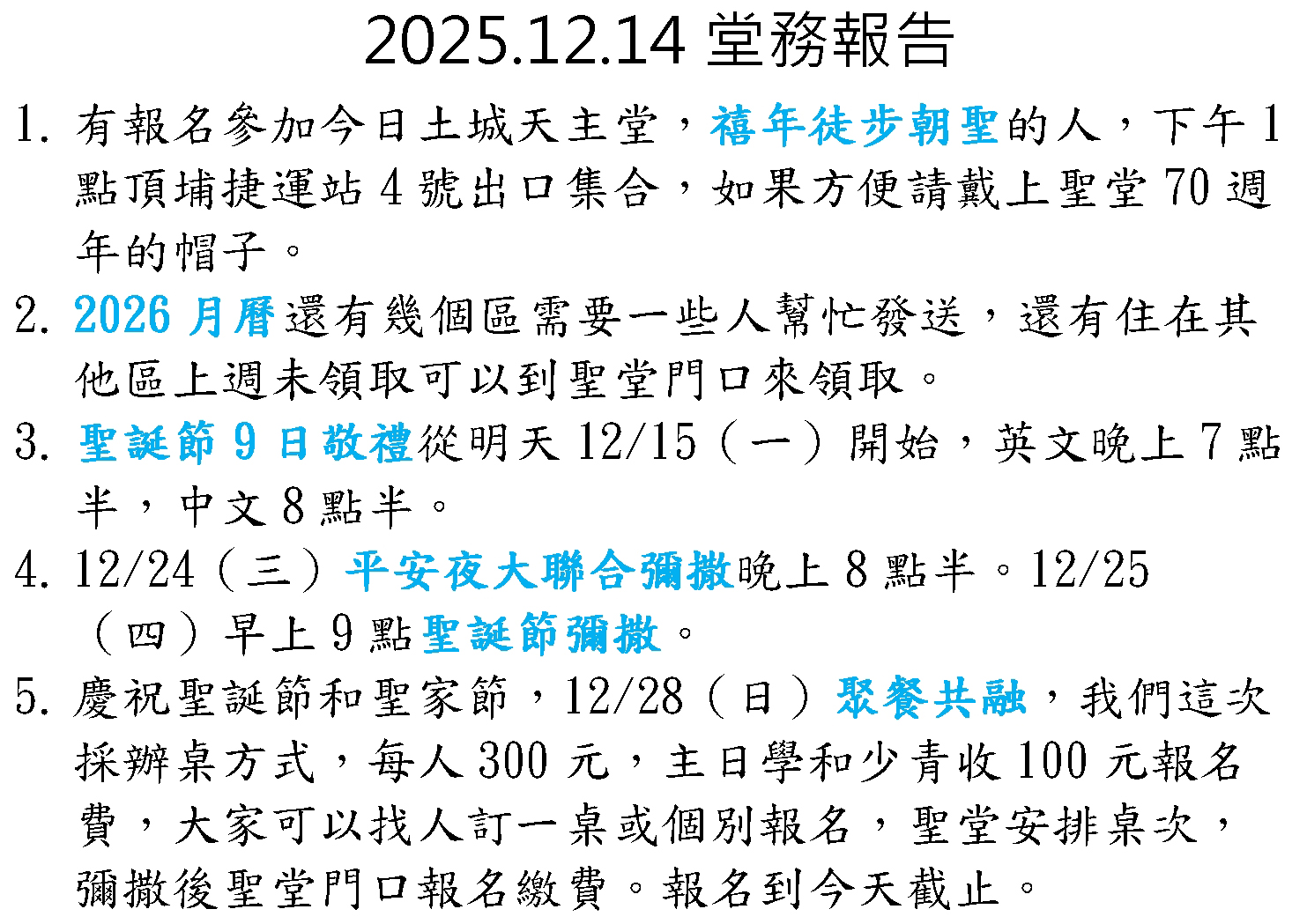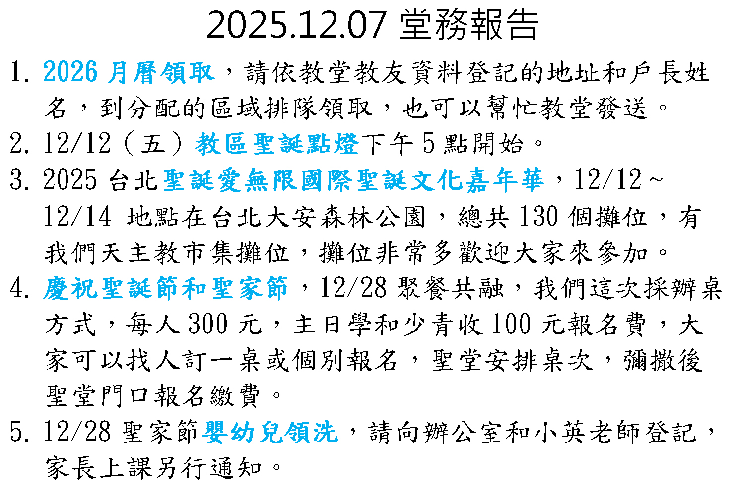 有意者,請聯絡: 鍾滿美姐妹(聖母軍): 本堂辦公室:(02)2681-1083